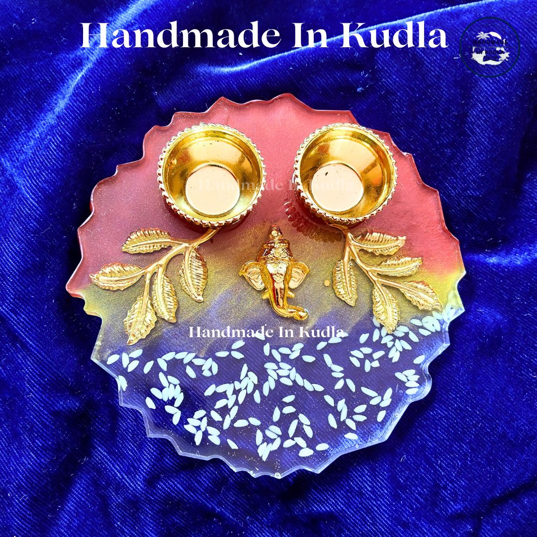 This elegant 5-inch resin pooja thali is beautifully crafted with a smooth glossy finish. Lightweight yet durable, it is perfect for daily pooja, festive rituals, and gifting. Its compact size makes it ideal for home temples and small prayer spaces. Easy to clean and maintain, this resin thali adds a graceful touch to your spiritual decor.