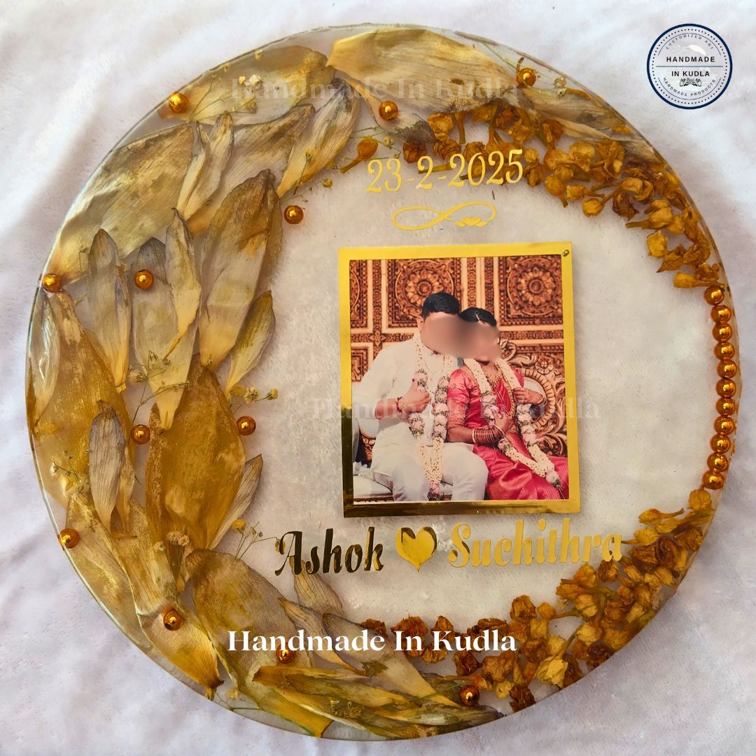 This Wedding Varmala Preservation Frame is thoughtfully crafted to preserve your wedding varmala in a long-lasting, elegant frame. Using advanced preservation techniques and premium materials, it transforms your sacred wedding moment into a stunning piece of décor.